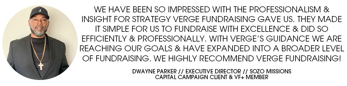 TAKE ACTION TO RESOURCE YOUR ORGANIZATION’S DREAMS BY LEVERAGING THE CLARITY AND STRATEGIC EXCELLENCE THAT COMES ALONG WITH PARTNERING WITH THE EXPERIENCED EXECUTIVES WITHIN THE VERGE FUNDRAISING NETWORK.